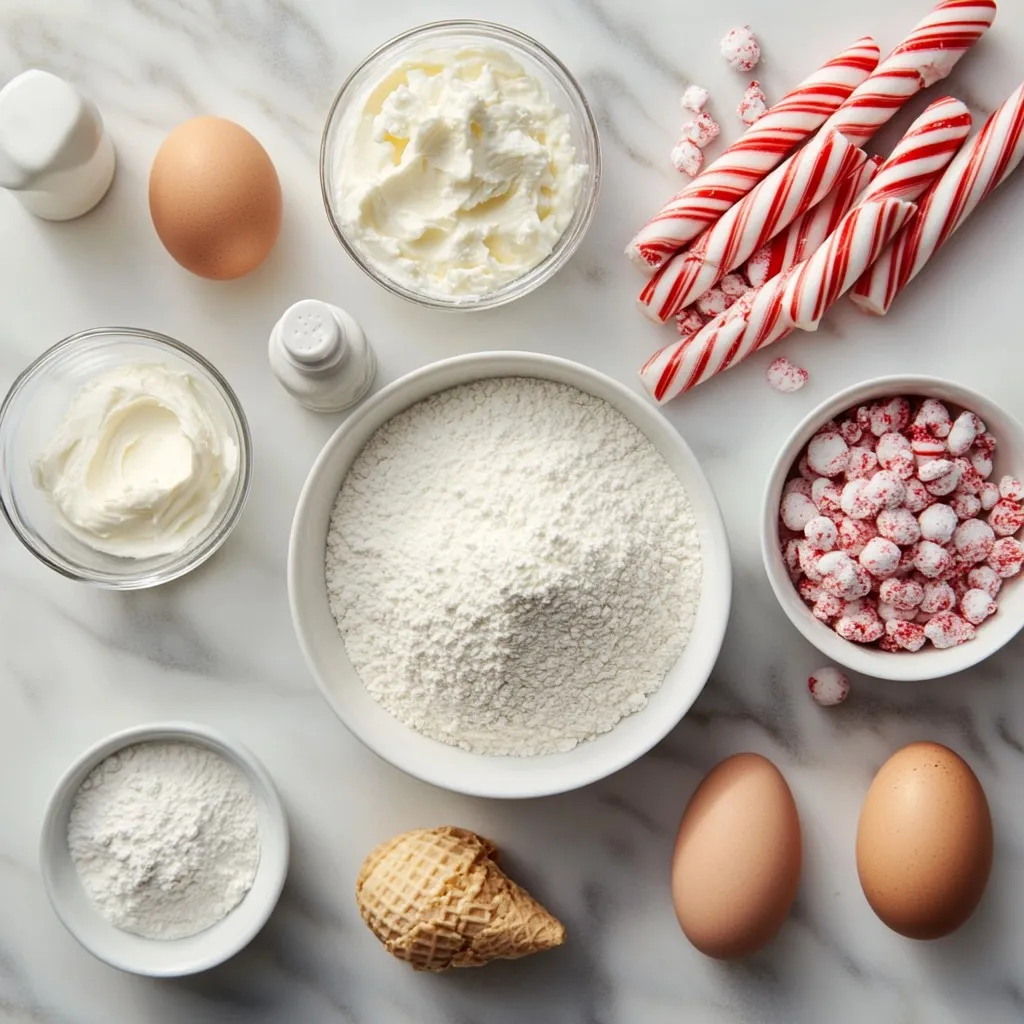 Hauptzutaten für Peppermint Candy Cane Cupcake Cones