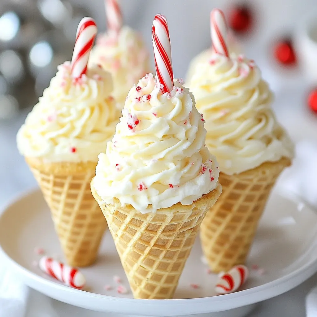 Diese Zutaten sorgen für einen süßen und frischen Geschmack. Die Kombination aus Pfefferminz und Zuckerstangen macht die Cupcake-Cones festlich und lecker.