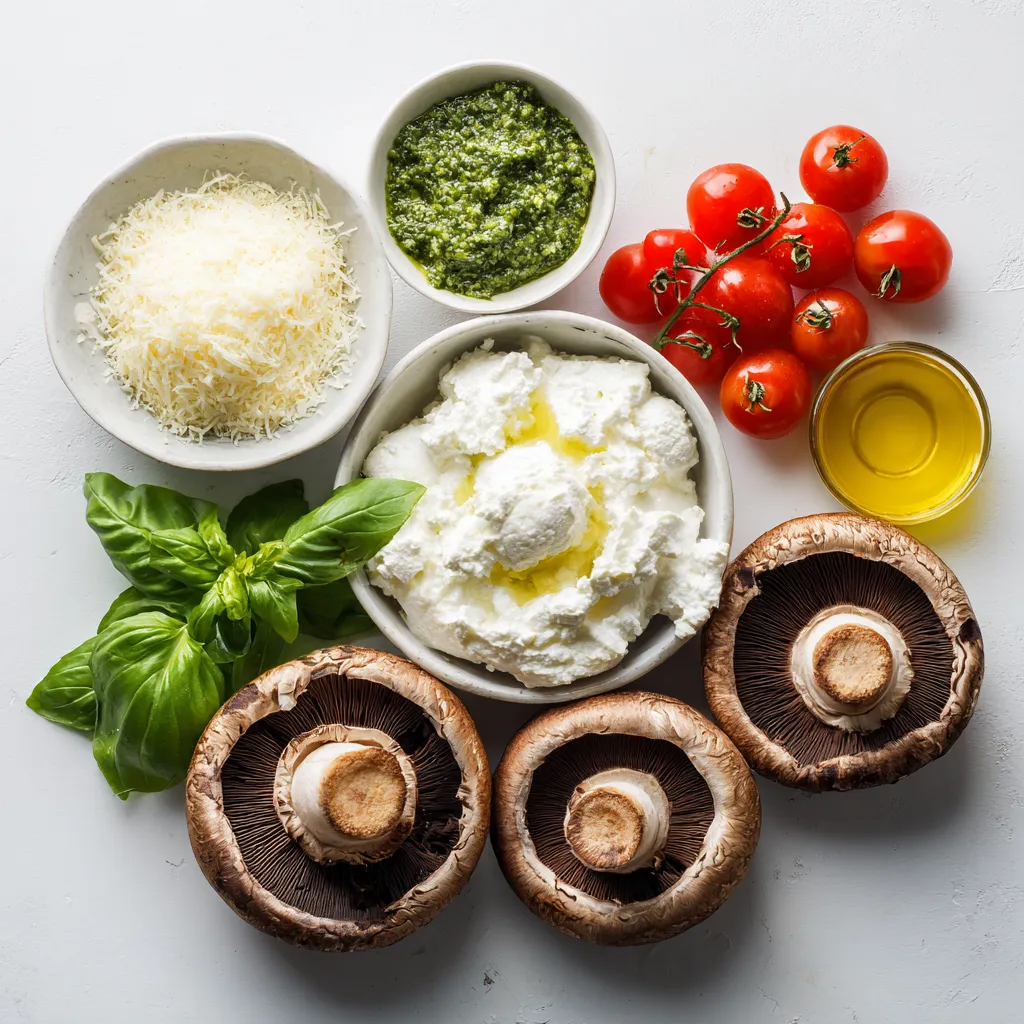 Die Hauptzutaten für Pesto-Ricotta gefüllte Portobello-Pilze sind einfach und frisch. Hier sind die wichtigsten Zutaten: