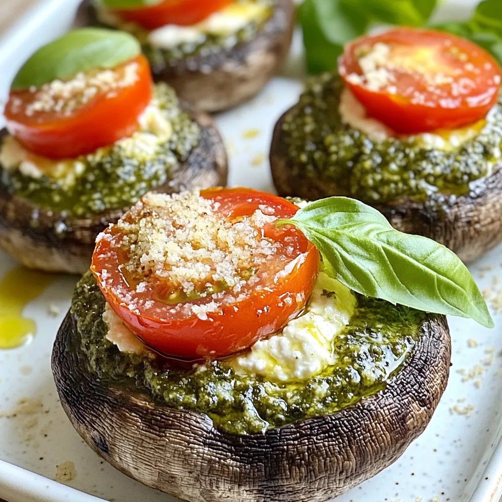 Die Zutaten für dieses Rezept sind einfach zu finden. Ricotta und Pesto sind in den meisten Läden erhältlich. Du kannst auch dein eigenes Pesto machen. Kirschtomaten geben Frische und Farbe. Basilikumblätter sind ideal zur Garnierung. Diese Pilze sind auch eine tolle Vorspeise oder Beilage. Sie sind lecker warm oder bei Raumtemperatur.