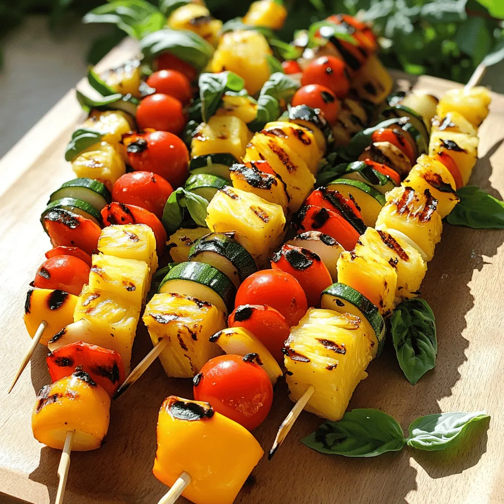 ![Für die Regenbogen Gemüse Spieße brauchst du frisches und buntes Gemüse. Hier sind die Hauptzutaten: - 1 Tasse Kirschtomaten - 1 Paprika (nach Wahl), in Würfel geschnitten - 1 Zucchini, in dicke Scheiben geschnitten - 1 gelbe Zucchini, in dicke Scheiben geschnitten - 1 Tasse Champignons, Stiele entfernt - 1 rote Zwiebel, in Spalten geschnitten - 1 Tasse frische Ananasstücke - 2 Esslöffel Olivenöl - 1 Teelöffel Knoblauchpulver - 1 Teelöffel geräuchertes Paprika - Salz und Pfeffer nach Geschmack - Frisches Basilikum oder Petersilie zur Garnierung (optional) Die Farben sind wichtig für den Look deiner Spieße. Wähle verschiedene Farben, um sie bunt zu machen. Hier sind einige Tipps: - Rote Paprika für Süße - Gelbe Zucchini für Helligkeit - Grüne Zucchini für Frische - Kirschtomaten für Saftigkeit - Champignons für eine erdige Note Diese Auswahl macht die Spieße nicht nur schön, sondern auch lecker! Um die besten Gemüse und Früchte auszuwählen, achte auf Frische. Hier sind einige Tipps: - Wähle knackige und feste Gemüse. - Achte auf leuchtende Farben. - Vermeide welke oder braune Stellen. Frische Ananas gibt den Spießen eine süße Note. Du kannst auch andere Früchte wie Papaya oder Mango ausprobieren. Diese geben zusätzlich einen tollen Geschmack. Mit diesen Zutaten und Tipps bist du bereit, deine Regenbogen Gemüse Spieße zu machen. Für das vollständige Rezept, schau dir die Sektion [Full Recipe] an. Zuerst waschen Sie alle Gemüse und Früchte gründlich. Das ist wichtig, um Schmutz und Bakterien zu entfernen. Schneiden Sie die Paprika in kleine Würfel. Die Zucchini und die gelbe Zucchini schneiden Sie in dicke Scheiben. Die rote Zwiebel wird in Spalten geschnitten. Lassen Sie die Kirschtomaten, die Champignons und die Ananasstücke ganz. So bleibt die Form schön. Nehmen Sie eine große Schüssel und geben Sie das Olivenöl, das Knoblauchpulver, das geräucherte Paprika, Salz und Pfeffer hinein. Mischen Sie alles gut. Fügen Sie dann das vorbereitete Gemüse und die Ananas in die Schüssel. Wälzen Sie alles in der Marinade, bis es gut benetzt ist. Lassen Sie die Mischung etwa 15-20 Minuten ziehen. So ziehen die Aromen richtig ein. Jetzt nehmen Sie Ihre Spieße, entweder aus Holz oder aus Metall. Beginnen Sie, das Gemüse und die Ananas darauf zu stecken. Für einen bunten Effekt folgen Sie diesem Muster: Kirschtomate, Paprika, rote Zwiebel, Champignon, Zucchini, Ananas und gelbe Zucchini. Wiederholen Sie das Muster, bis die Spieße gefüllt sind. Lassen Sie an beiden Enden etwas Platz, um die Spieße gut zu halten. Heizen Sie Ihren Grill oder eine Grillpfanne auf mittlerer Hitze vor. Sobald er heiß ist, legen Sie die Spieße auf den Grill. Grillen Sie sie etwa 10-12 Minuten lang. Wenden Sie die Spieße gelegentlich. So werden sie gleichmäßig gar und bekommen schöne Grillstreifen. Nachdem die Spieße fertig sind, nehmen Sie sie vorsichtig vom Grill. Legen Sie sie auf eine Servierplatte. Garnieren Sie die Spieße nach Belieben mit frischem Basilikum oder Petersilie. So sehen sie sehr ansprechend aus und schmecken gut. Genießen Sie Ihre Regenbogen Gemüse Spieße! Für das vollständige Rezept schauen Sie sich bitte die [Full Recipe] an. Eine gute Marinade macht den Unterschied. Für meine Regenbogen Gemüse Spieße benutze ich gerne eine Mischung aus Olivenöl, Knoblauchpulver und geräuchertem Paprika. Diese Zutaten verleihen dem Gemüse Geschmack und Aroma. Um die Marinade noch besser zu machen, füge frische Kräuter wie Basilikum oder Petersilie hinzu. Diese Kräuter geben einen frischen Kick. Lass das Gemüse mindestens 15 Minuten in der Marinade ziehen. So kann es die Aromen gut aufnehmen. Grillen kann einfach sein. Ich empfehle, deinen Grill auf mittlere Hitze vorzuheizen. Holzspieße solltest du vorher in Wasser einweichen. So brennen sie nicht an. Leg die Spieße auf den Grill und wende sie alle paar Minuten. So bekommen sie schöne Grillstreifen und bleiben zart. Achte darauf, dass das Gemüse weich ist, aber nicht zerfällt. Das dauert etwa 10-12 Minuten. Das Anrichten macht Spaß! Nimm eine große Servierplatte und lege die Spieße schön darauf. Du kannst sie nach Farben oder Mustern anordnen. Das sieht toll aus und macht Appetit. Wenn du magst, streue frisches Basilikum oder Petersilie darüber. Das macht die Spieße noch schöner und gibt einen tollen Geschmack. Wenn du die Spieße zum Gartenfest oder zum Grillen mitbringst, werden sie sicher ein Hit sein! {{image_4}} Regenbogen Gemüse Spieße sind sehr anpassbar. Sie können sie leicht vegetarisch oder vegan machen. Wenn Sie vegan sind, lassen Sie einfach die Beilagen weg, die tierische Produkte enthalten. Zum Beispiel, verwenden Sie nur Gemüse und Früchte. Sie können auch Tofu oder Tempeh hinzufügen. Diese Optionen bringen viel Protein und Geschmack. Die Aromen machen die Spieße besonders. Sie können verschiedene Kräuter und Gewürze nutzen. Probieren Sie frischen Thymian oder Oregano. Diese Kräuter passen gut zu Gemüse. Sie können auch Feta-Käse oder Hummus als Dip verwenden. Diese Beilagen bringen einen neuen Geschmack und machen die Spieße noch leckerer. Die besten Gemüse und Früchte hängen von der Saison ab. Im Sommer sind Zucchini und Paprika frisch und lecker. Im Herbst können Sie Kürbis oder Süßkartoffeln verwenden. Diese Gemüse geben den Spießen eine neue Note. Achten Sie darauf, was gerade Saison hat. So bleiben Ihre Spieße frisch und geschmackvoll. Für das vollständige Rezept, schauen Sie bitte hier: [Full Recipe]. Wenn Sie nach dem Grillen Spieße übrig haben, bewahren Sie sie in einem luftdichten Behälter auf. Stellen Sie sicher, dass sie gut abgekühlt sind. Diese Spieße halten sich bis zu drei Tage im Kühlschrank. Sie können sie kalt genießen oder erneut aufwärmen. Erwärmen Sie sie in der Pfanne oder im Ofen, um die Textur zu erhalten. Das Einfrieren ist eine großartige Option, um die Spieße länger haltbar zu machen. Wickeln Sie di