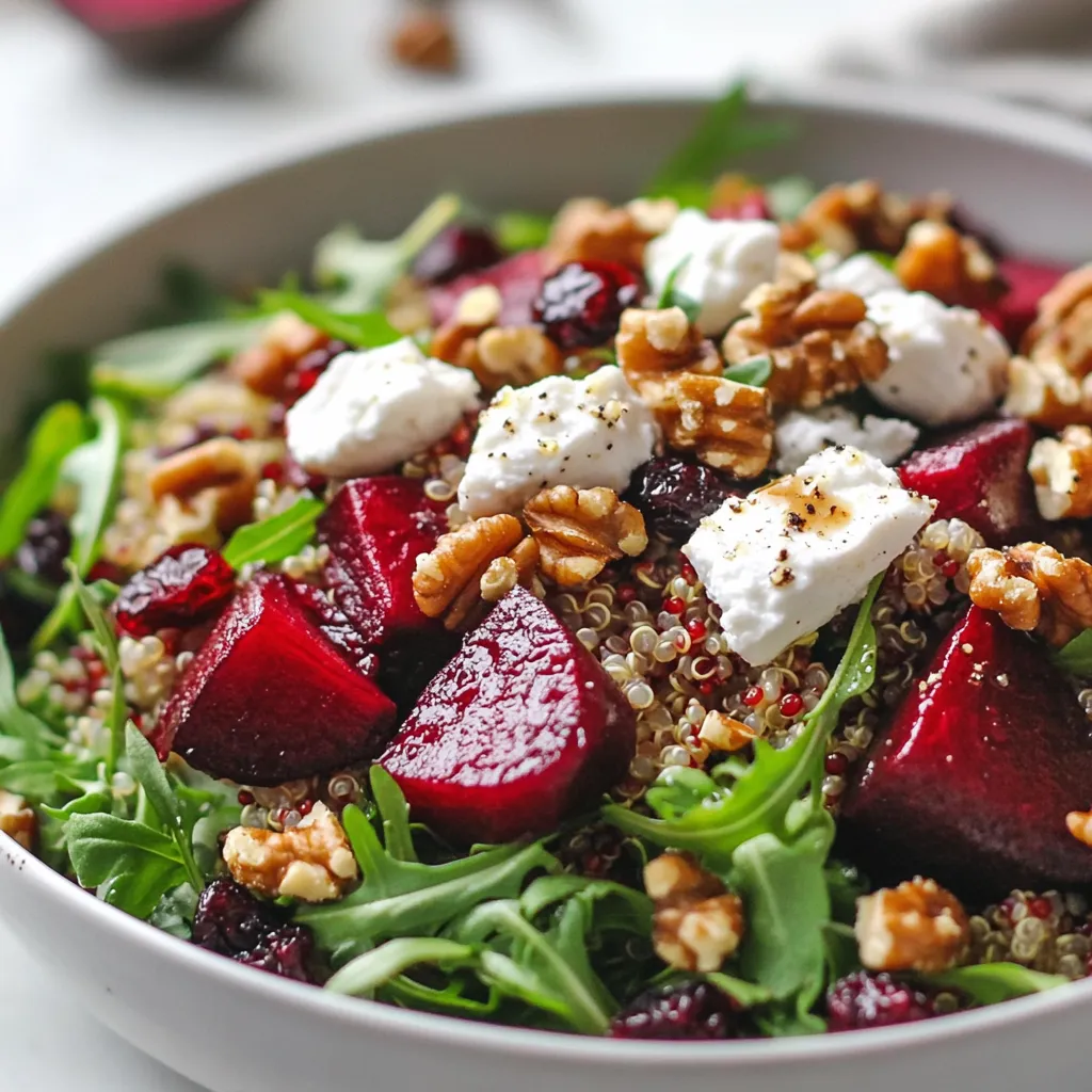 Ein erfrischender Salat mit gerösteten Rüben, Ziegenkäse und Quinoa.