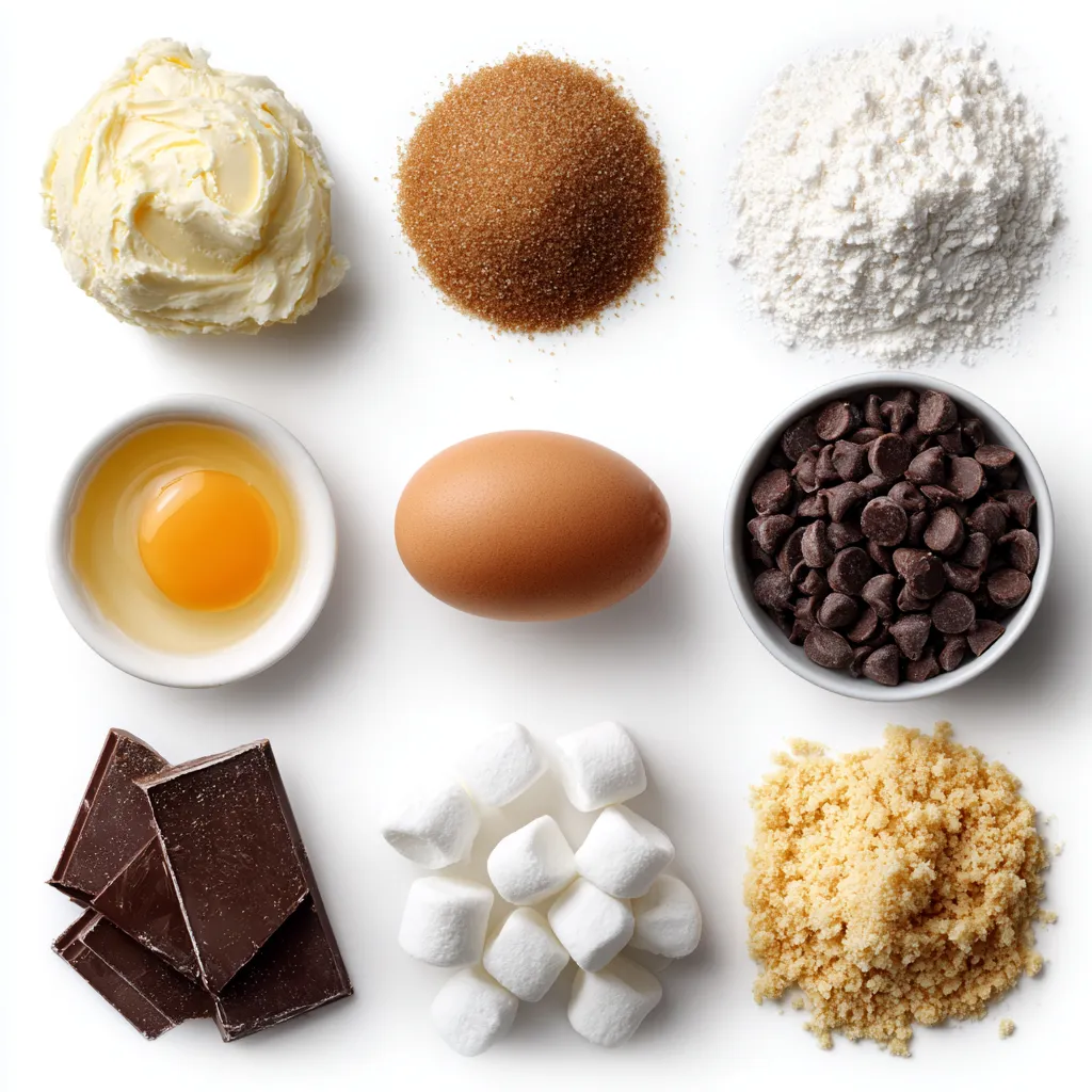 Hauptzutaten für Schokoladenstückchen S’mores Kekse