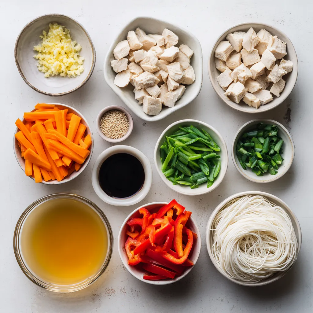 Für die perfekte Sesame Ginger Chicken Noodle Soup brauchst du diese Hauptzutaten: