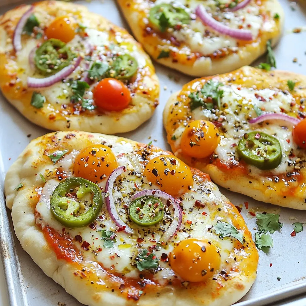Wenn du eine vegetarische Naan-Pizza willst, sind die Möglichkeiten groß. Du kannst einfach die Jalapeños weglassen oder sie durch süße Paprika ersetzen. Füge mehr Gemüse hinzu, wie Zucchini oder Spinat. Diese Zutaten bringen frische Aromen und tolle Farben auf die Pizza. Du kannst auch Feta oder Ziegenkäse für einen cremigen Geschmack verwenden. Diese Käsesorten passen gut zu den anderen Zutaten.