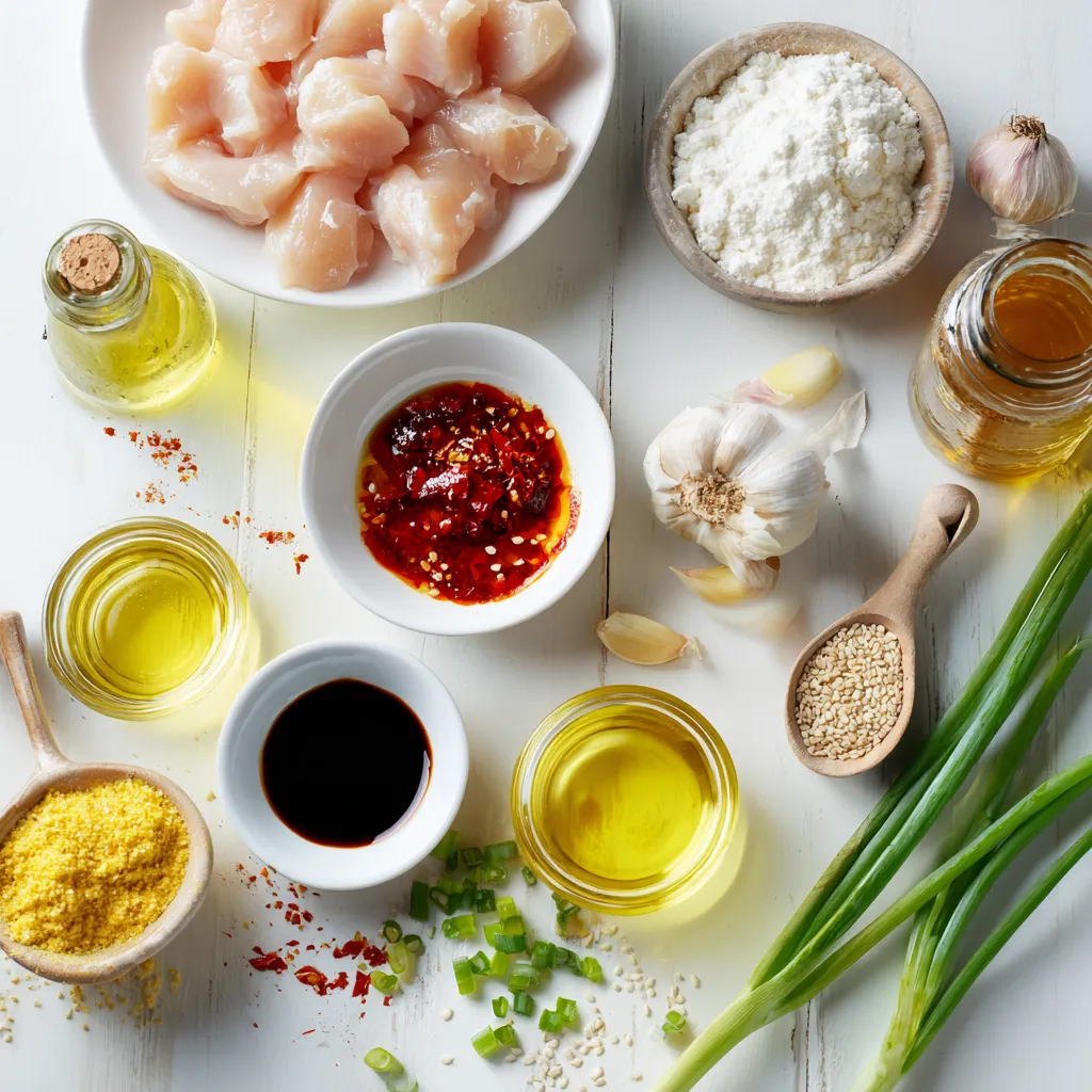 Hauptzutaten für Spicy Honey Garlic Chicken Bites