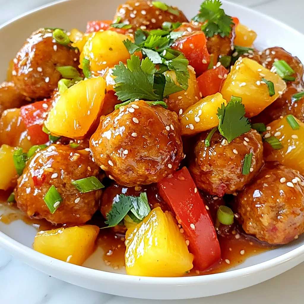 Präsentiere die Fleischbällchen auf einer großen Platte. Beträufle sie mit zusätzlicher Sauce für mehr Geschmack. Garnieren mit Sesam und frischem Koriander macht sie hübsch. Serviere dazu gedämpften weißen Reis. Der Reis nimmt die köstliche Sauce gut auf. Alternativ passen auch gebratene Nudeln oder ein frischer Salat. So wird das Gericht noch bunter und leckerer.