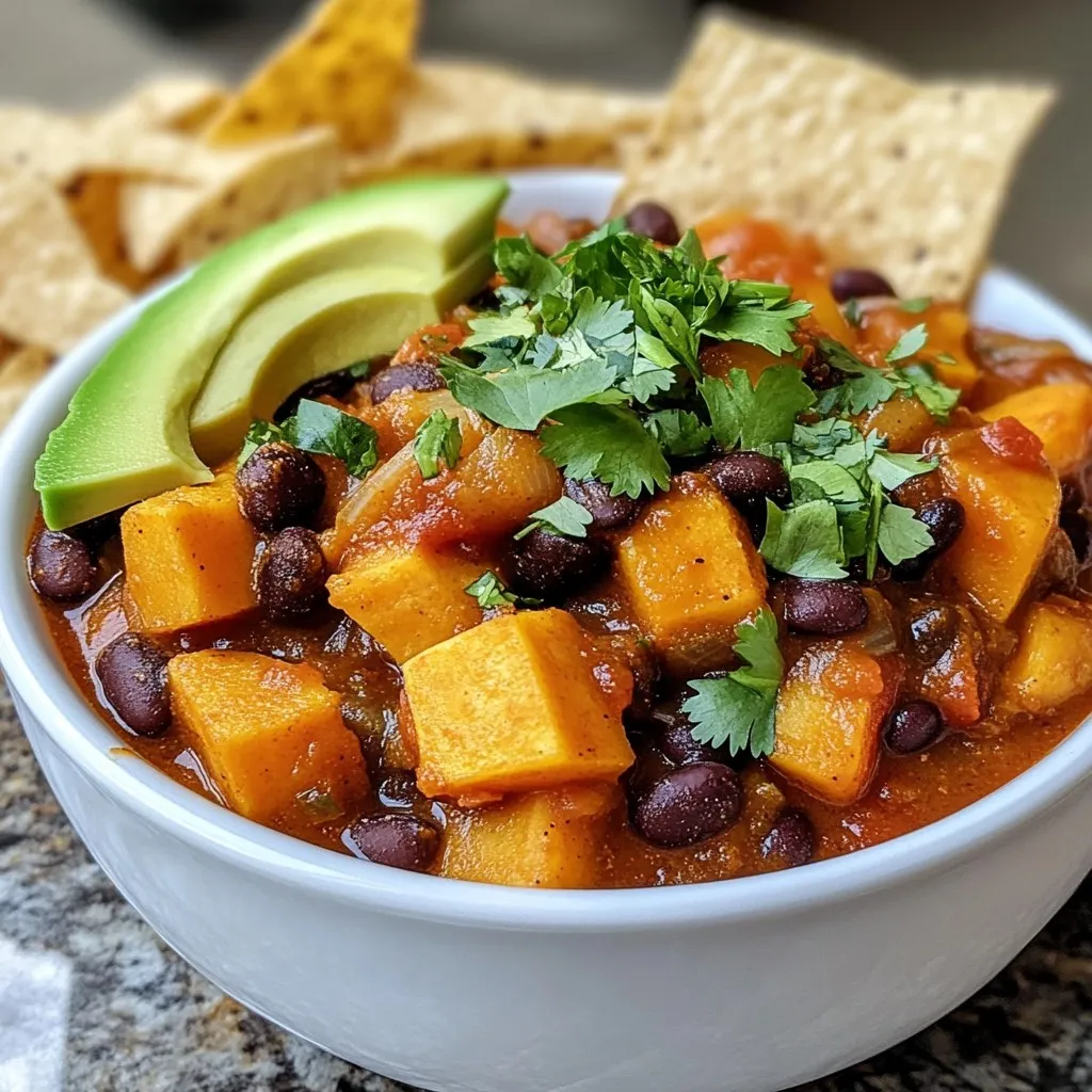 Ein herzhaftes und würziges Chili mit Süßkartoffeln und schwarzen Bohnen, perfekt für kalte Tage.