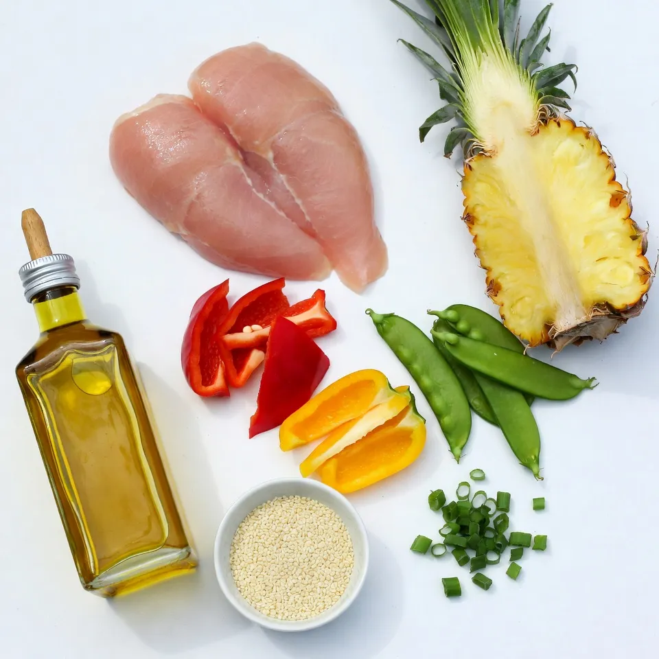 Hauptzutaten für Teriyaki-Hähnchen-Ananas-Schalen