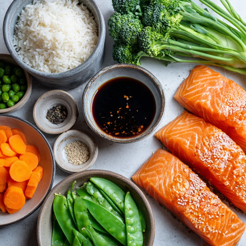 Für eine köstliche Teriyaki-Lachs-Reisbowl benötigst du folgende Zutaten: