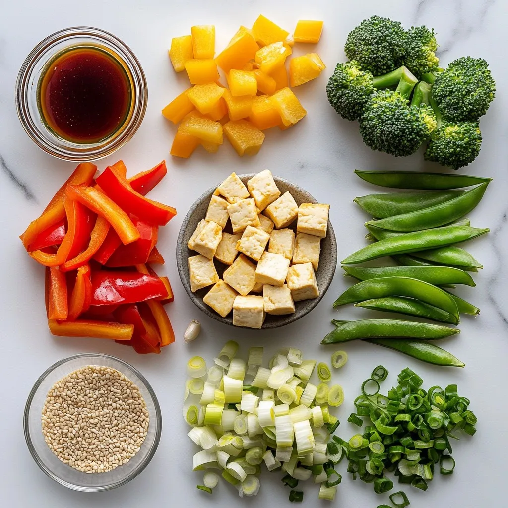 Für das Teriyaki Tofu Stir Fry benötigst du einige wichtige Zutaten: