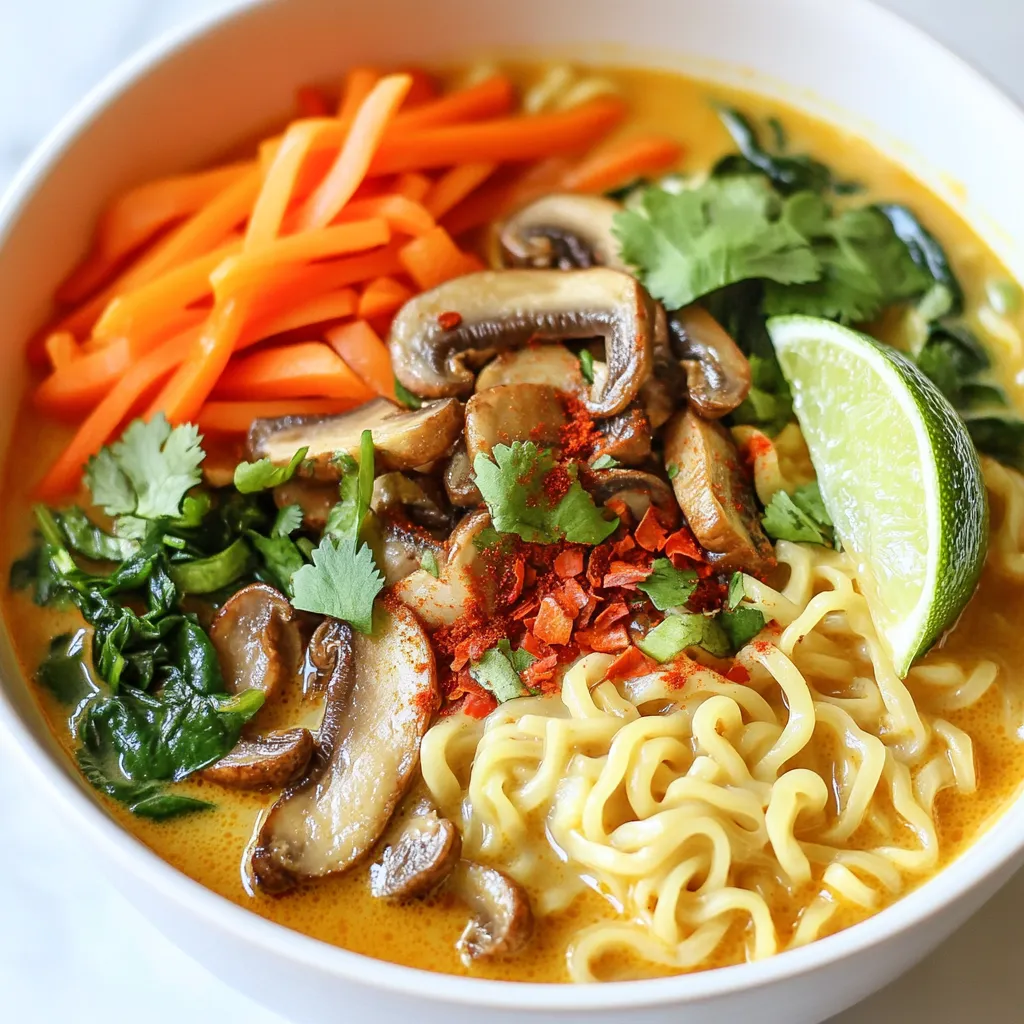 Ein köstliches und aromatisches Ramen-Gericht mit Kokosmilch und frischem Gemüse.