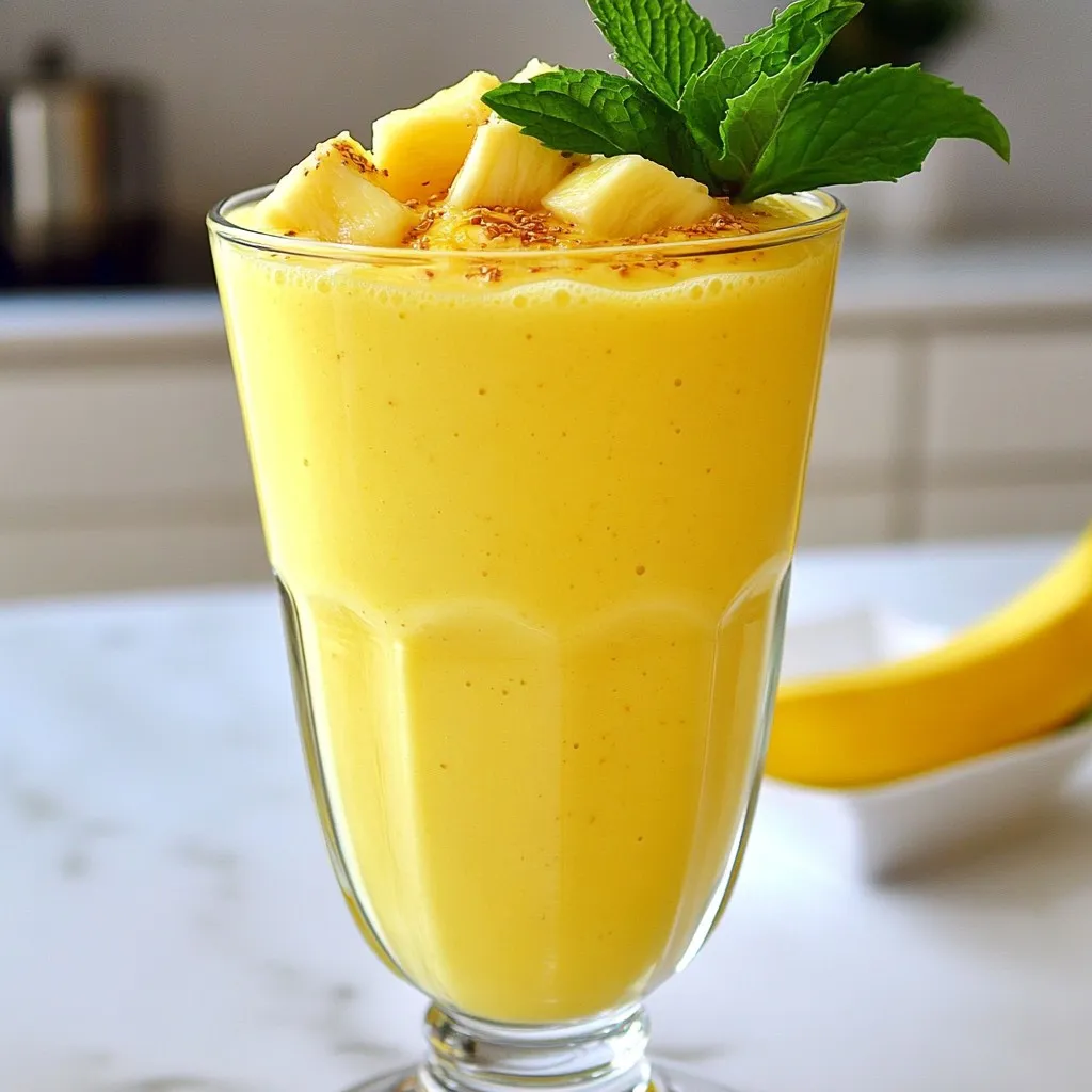 Ein erfrischender und cremiger Smoothie mit frischer Ananas und Banane, ideal für heiße Tage.