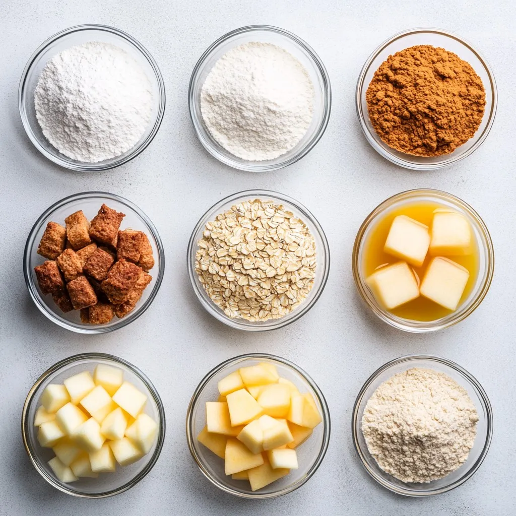 Hauptzutaten für Zimt-Apfel-Crumble-Muffins
