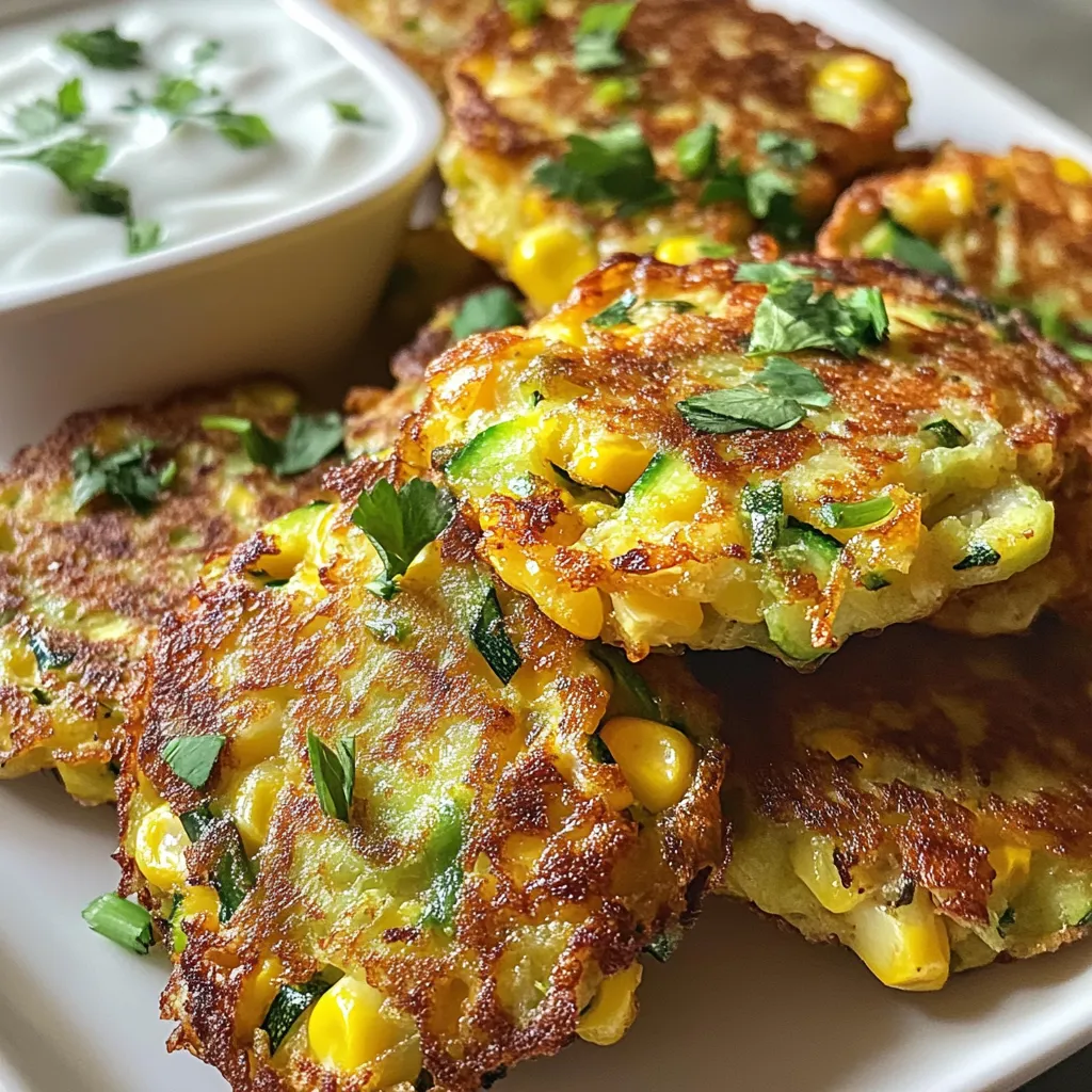 Leckere Fritter aus Zucchini und Mais, perfekt als Snack oder Beilage.