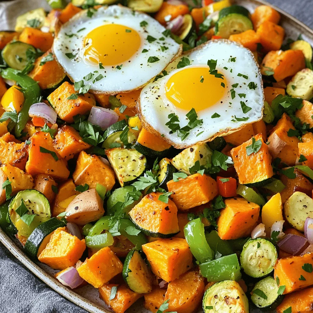 ![- 2 mittelgroße Süßkartoffeln, gewürfelt - 2 kleine Zucchini, gewürfelt - 1 Paprika (jede Farbe), grob gehackt Die Hauptzutaten sind einfach und leicht zu finden. Süßkartoffeln bringen eine natürliche Süße. Zucchini fügt Frische und Farbe hinzu. Die Paprika gibt einen schönen Crunch und Geschmack. - 1 Teelöffel geräuchertes Paprikapulver - 1 Teelöffel getrockneter Oregano - Salz und Pfeffer nach Geschmack - 2 Esslöffel Olivenöl Die Gewürze machen das Gericht besonders. Geräuchertes Paprikapulver bringt einen tiefen, rauchigen Geschmack. Oregano gibt eine schöne Kräuternote. Olivenöl sorgt für eine gute Bräunung und Geschmack. - 1 kleine rote Zwiebel, fein gehackt - 2 Knoblauchzehen, gehackt - Frische Petersilie zum Garnieren - Optional: 2 Eier (zum Topping) Zusätzliche Zutaten wie Zwiebel und Knoblauch verstärken die Aromen. Petersilie bringt Frische und Farbe. Die Eier sind eine tolle Option für mehr Protein. Für das vollständige Rezept, schau dir das Zucchini-Süßkartoffel-Hash an. Es ist einfach und macht Spaß zu kochen! Zuerst bereite die Zutaten vor. Du benötigst gewürfelte Süßkartoffeln und Zucchini. Schneide auch die Paprika in grobe Stücke. Dann hackst du die Zwiebel und den Knoblauch. Das macht die weiteren Schritte einfacher und schneller. Jetzt erhitze eine große Pfanne bei mittlerer Hitze. Gib zwei Esslöffel Olivenöl in die Pfanne. Wenn das Öl heiß ist, füge die gewürfelten Süßkartoffeln hinzu. Brate sie etwa 10 Minuten lang an. Rühre dabei gelegentlich um. Die Süßkartoffeln sollten weich werden. Nach den 10 Minuten füge die gehackte Zwiebel und die Paprika in die Pfanne. Brate diese Mischung für weitere 5 Minuten. Die Zwiebel wird glasig und duftet gut. Danach gib die gewürfelte Zucchini und den gehackten Knoblauch dazu. Füge auch das geräucherte Paprikapulver, den Oregano, Salz und Pfeffer hinzu. Vermenge alles gut. Lass es für 5 bis 7 Minuten brutzeln, bis alles zart ist. Du kannst auch die [Full Recipe] verwenden, um die Schritte besser nachzuvollziehen. Um die beste Textur zu bekommen, brate die Süßkartoffeln zuerst. Sie brauchen mehr Zeit, um weich zu werden. Wenn sie leicht goldbraun sind, kannst du die Zucchini hinzufügen. Brate die Zucchini nur kurz, damit sie knackig bleibt. So wird dein Hash nicht matschig. Du kannst das Rezept ganz nach deinem Geschmack anpassen. Füge zum Beispiel Spinat für mehr Farbe und Nährstoffe hinzu. Champignons bringen einen herzhaften Geschmack in dein Gericht. Du kannst auch die Gewürze nach deinem Wunsch verändern. Vielleicht magst du es schärfer oder würziger? Serviere dein Zucchini-Süßkartoffel-Hash auf einer großen Platte. Das sieht toll aus und macht Appetit. Streue frische Petersilie darüber für einen schönen Farbkontrast. Wenn du Eier magst, sind sie eine tolle Ergänzung. Sie geben zusätzlich Geschmack und machen das Gericht noch besser. Für das vollständige Rezept schau dir die [Full Recipe] an. {{image_4}} Um dein Zucchini-Süßkartoffel-Hash noch besser zu machen, kannst du verschiedene Gemüsesorten integrieren. Probiere Spinat, Champignons oder sogar Karotten. Diese Gemüsesorten bringen neue Farben und Geschmäcker. Wenn du eine vegane Option möchtest, kannst du pflanzlichen Eiersatz nutzen. Dieser passt perfekt und sorgt für eine tolle Textur. Für mehr Protein kannst du Feta-Käse oder Avocado hinzufügen. Beide geben einen cremigen Geschmack und machen das Gericht gehaltvoller. Wenn du Fleisch oder Tofu magst, sind sie auch eine gute Wahl. Hähnchen oder Räuchertofu fügen eine herzliche Note hinzu, die gut mit dem Gemüse harmoniert. Das Hash schmeckt besonders gut mit Beilagen wie Toast oder einem frischen Salat. Diese Optionen bringen frische und Knusprigkeit auf den Tisch. Du kannst auch verschiedene Saucen ausprobieren. Eine scharfe Salsa oder eine Joghurtsauce passt sehr gut dazu. So kannst du das Gericht nach deinem Geschmack mit neuen Aromen anpassen. Nach dem Kochen lasse den Zucchini-Süßkartoffel-Hash zuerst abkühlen. Dies hilft, die Textur zu bewahren. Wenn er vollständig abgekühlt ist, fülle ihn in einen luftdichten Behälter. So bleibt er frisch und lecker. Im Kühlschrank hält er sich bis zu 4 Tage. Möchtest du Reste einfrieren? Hier ist eine einfache Schritt-für-Schritt-Anleitung: 1. Lass den Hash vollständig abkühlen. 2. Teile ihn in Portionen auf. 3. Fülle jede Portion in einen gefriergeeigneten Beutel oder Behälter. 4. Entferne so viel Luft wie möglich, bevor du sie verschließt. Gefrorener Hash bleibt bis zu 3 Monate haltbar. Achte darauf, das Datum zu notieren, um die Frische zu garantieren. Um den besten Geschmack beim Aufwärmen zu erhalten, benutze die Pfanne. Erhitze den Hash bei mittlerer Hitze. Füge einen Spritzer Wasser oder etwas Öl hinzu, damit nichts anbrennt. Decke die Pfanne ab und rühre gelegentlich um. So vermeidest du Überkochen und trockenen Hash. Du kannst auch die Mikrowelle nutzen. Stelle die Hitze niedrig ein und rühre regelmäßig um. So bleibt der Hash saftig und lecker. Probiere diese Methoden aus und genieße jeden Bissen! Die Zubereitung dauert insgesamt 30 Minuten. Die Vorbereitungszeit ist 10 Minuten. In dieser Zeit schneidest du alle Zutaten. Danach brätst du alles für etwa 20 Minuten in der Pfanne. Es ist ein schnelles und einfaches Gericht, das viel Freude macht. Ja, du kannst das Rezept leicht vegan machen. Lass einfach die Eier weg. Stattdessen kannst du etwas pflanzliches Protein hinzufügen, wie Kichererbsen oder Tofu. Diese geben dem Gericht einen guten Biss. Achte darauf, die Gewürze gut anzupassen. So bleibt der Geschmack toll. Du kannst viele Gemüsesorten hinzufügen. Spinat ist eine gute Wahl. Auch Champignons oder Brokkoli passen gut. Diese Gemüse bringen mehr Geschmack und Nährstoffe ins Gericht. Du kannst auch Karotten oder Erbsen verwenden. Experimentiere mit deinen Lieblingsgemüsesorten, um den Hash noch bunter zu gestalten. Zusammengefasst ist der Zucchin